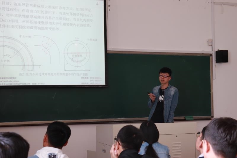 2017级研究生赵杨同学对“光整加工6061铝合金弯管内表面”进行了专题汇报,从背景及课题意义、实验原理及模拟、实验方法及条件、实验结果及分析讲解了自己的实验课题。随后周艳文教授对该实验出现的问题提出了建设性的意见,之后大家结合自身专业知识积极参与讨论与发言。