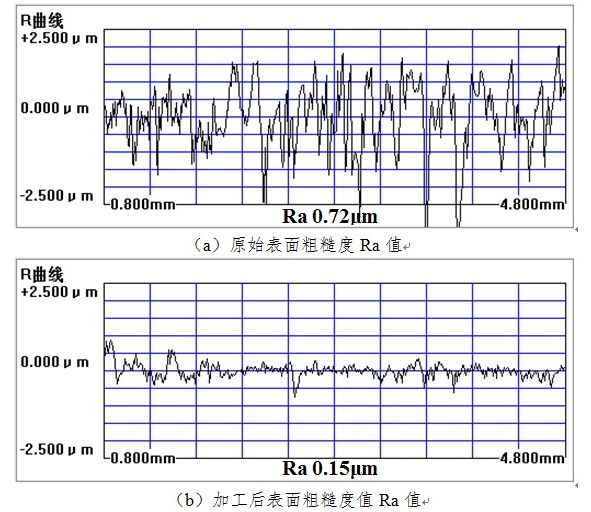 采用磁力研磨技术对钛合金材料进行研磨加工,经过10 min的磁力研磨,工件的表面粗糙度值从Ra0.72μm降至Ra0.2μm~Ra0.15μm,工件表面较深纹理基本得到去除,表面质量的到改善。