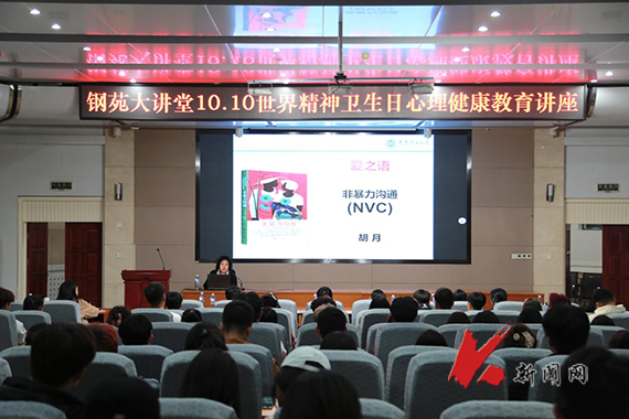 10月11日晚,开云app官方在线入口心理中心邀请大连理工大学胡月教授,在图书馆报告厅作题为《爱之语—非暴力沟通》的心理健康教育讲座。马克思主义学院心理中心全体教师以及学校大一、大二心理委员同学听讲。