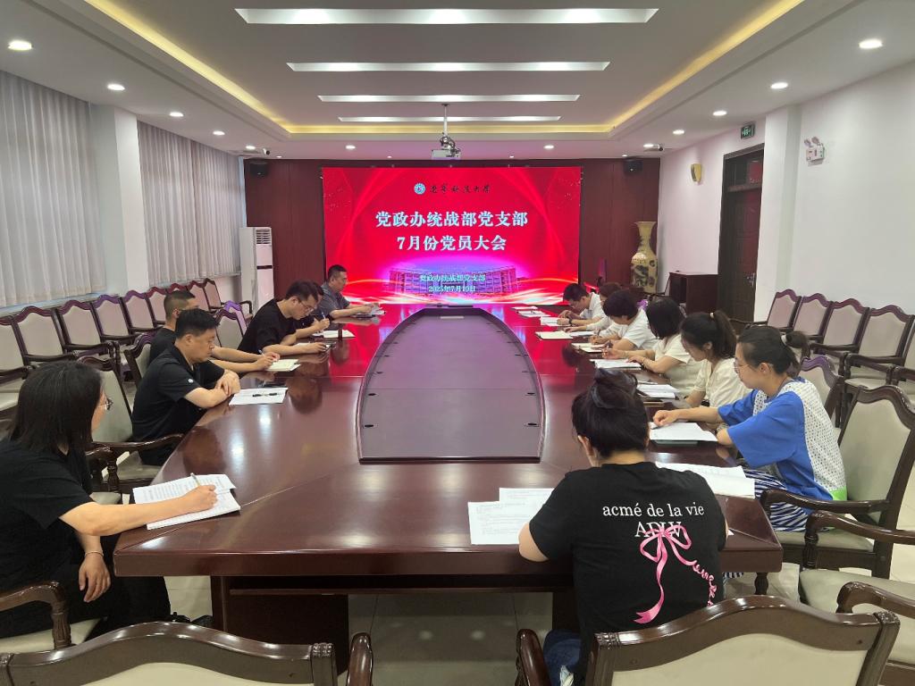 7月10日下午,党政办统战部党支部在机关楼120(东)会议室召开党员大会,开展集体学习。会议由党支部书记李宁主持。