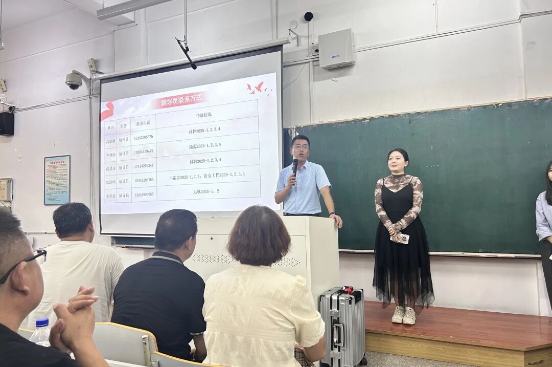 202592日下午,材料与冶金学院在博学楼c102教室召开了2025级新生家长会。本次家长会在党委副书记艾英华和25级全体辅导员的努力下顺利结束。