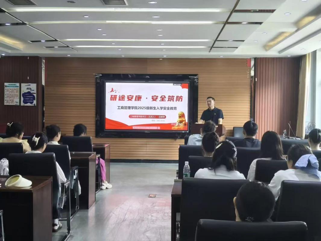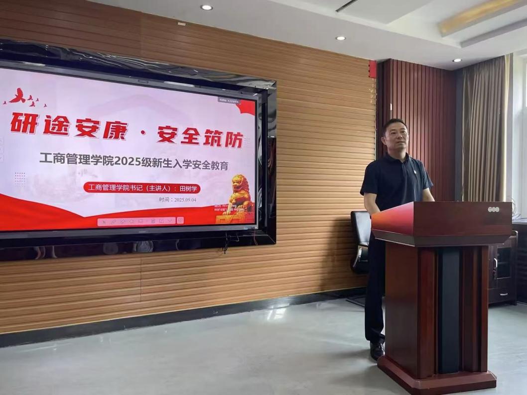 9月4日,管理学院于明信楼B411组织开展2025级研究生入学教育“研途安康·安全筑防”活动。本次活动由学院党委书记、2025级研究生辅导员田树学主讲。