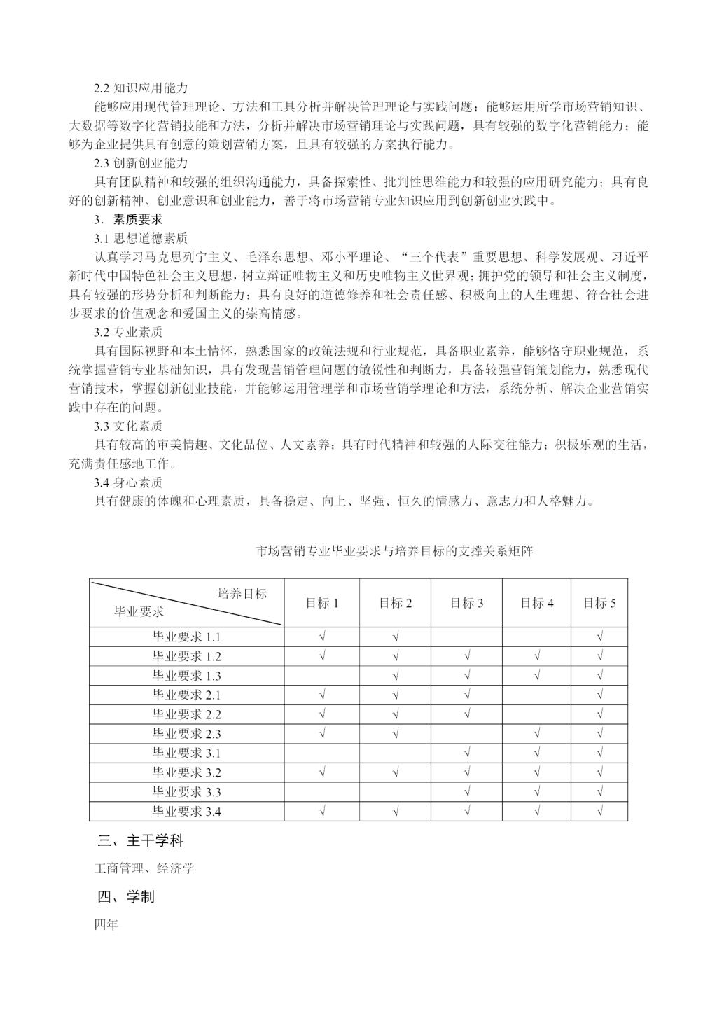市场营销专业培养方案