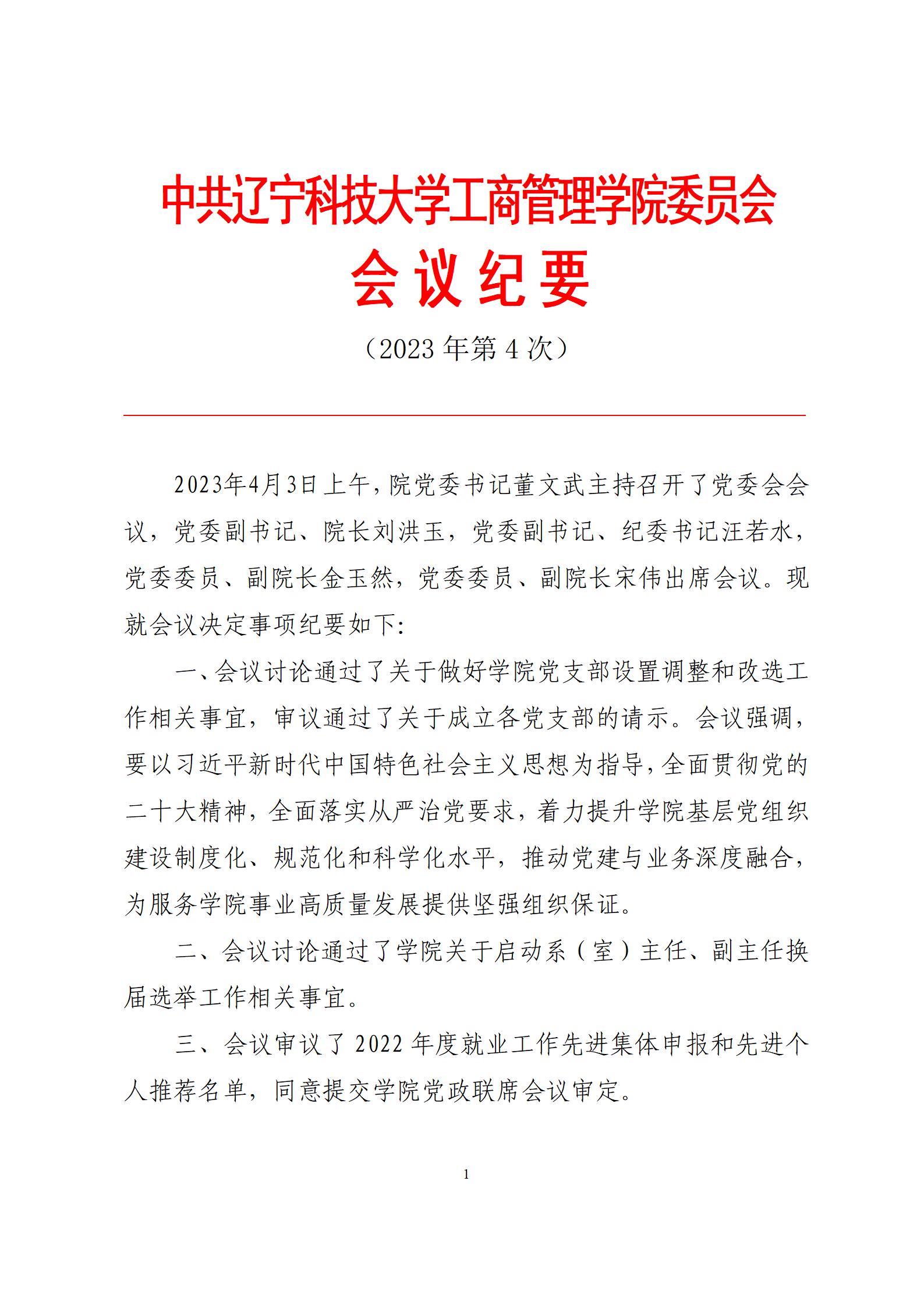 中共开云app官方在线入口工商管理学院委员会会议纪要(2023年第4次)