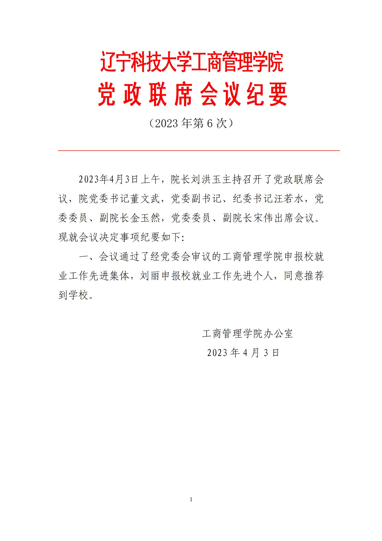 开云app官方在线入口工商管理学院党政联席会议纪要(2023年第6次)