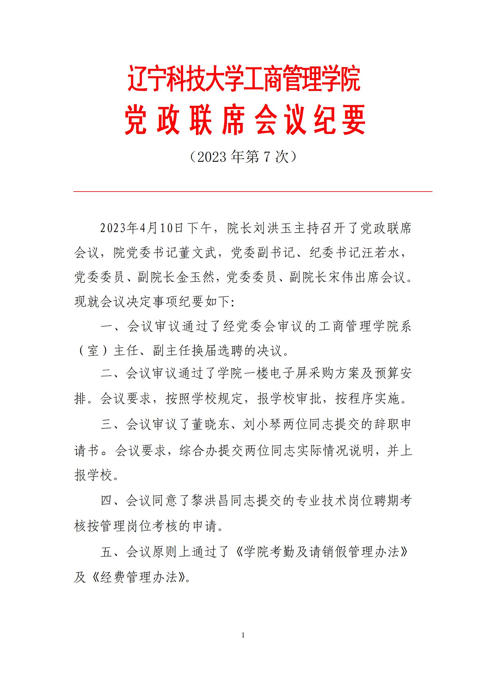 开云app官方在线入口工商管理学院党政联席会议纪要(2023年第7次)