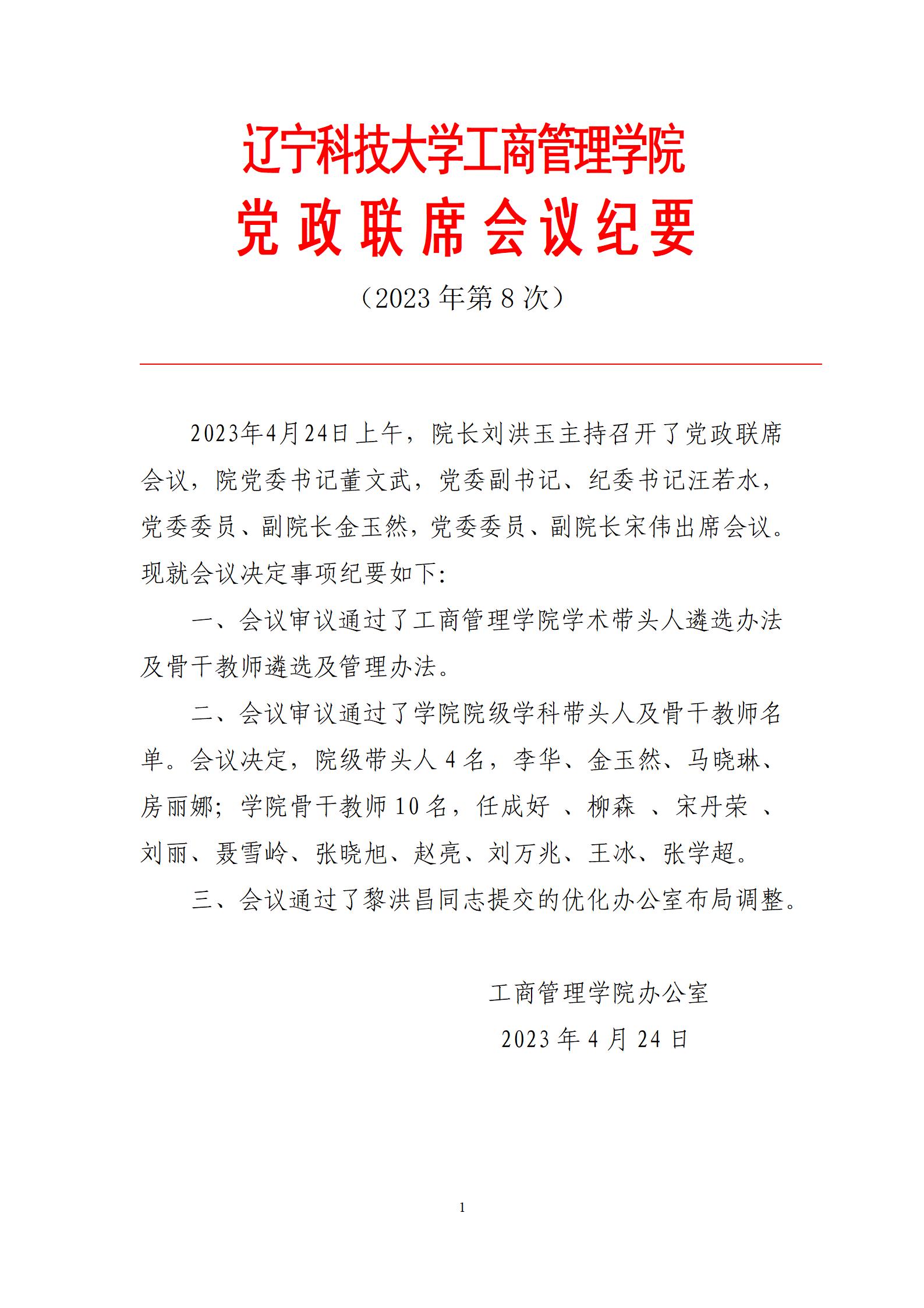 开云app官方在线入口工商管理学院党政联席会议纪要(2023年第8次)