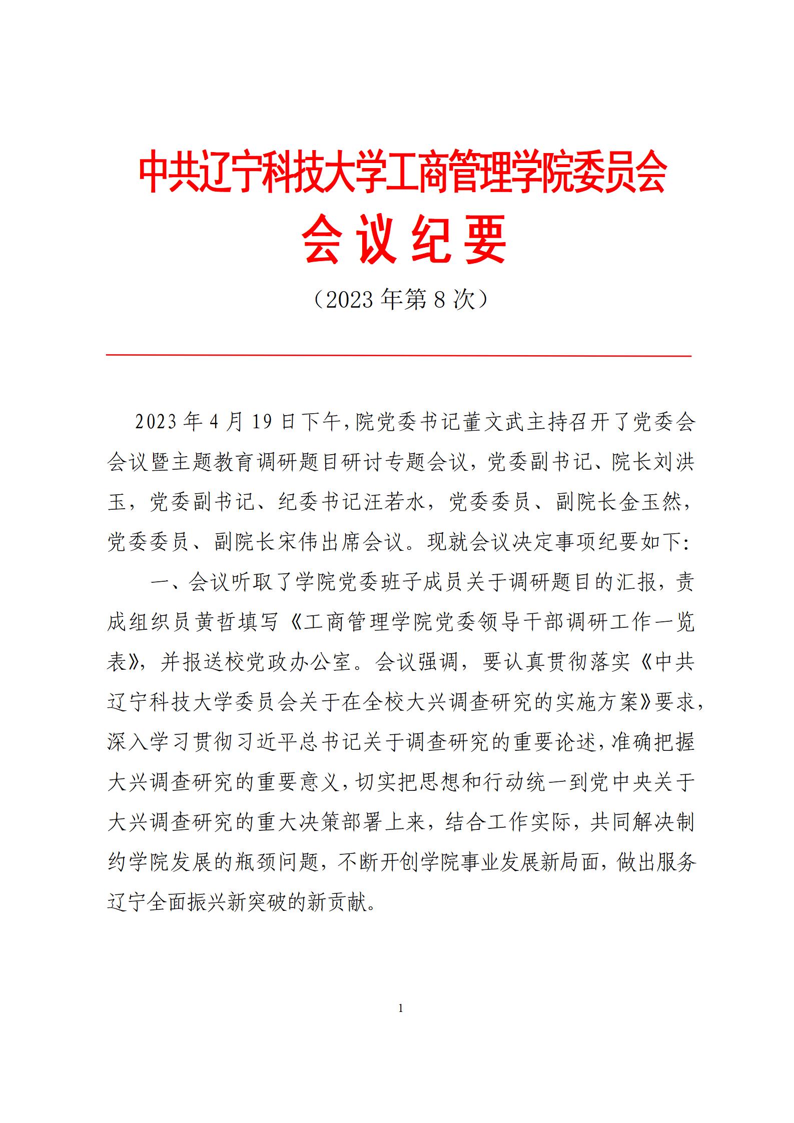 中共开云app官方在线入口工商管理学院委员会会议纪要(2023年第8次)