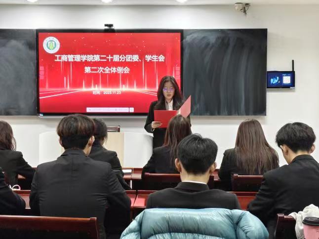 11月23日晚,工商管理学院第二十届学生会第二次工作例会在学院B511教室顺利举行,本次会议由办公室负责人马驰主持,分团委、学生会全体成员共同参与,旨在总结近期工作进展、明确后续任务方向,推动团学工作高效有序开展。