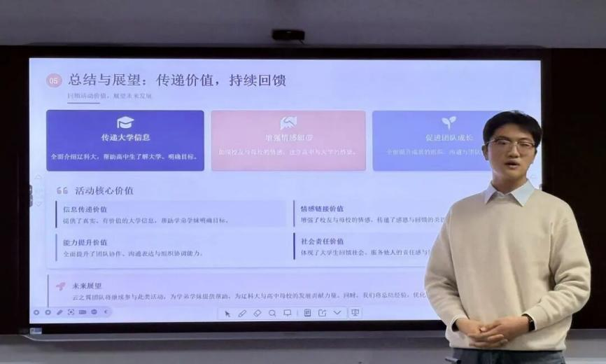 常嘉富结合自身实践经历,围绕宣讲工作的核心目标与方法展开交流。他强调,宣讲并非对高校情况的简单介绍,而应是一场精心设计、双向互动、触动心灵的深度对话。在内容筹备方面,他建议同学们精准把握高中学生的关注焦点,将个人大学体验、专业认知与高中阶段常见的成长困惑有机结合,通过共情表达拉近距离,借助沉浸式分享激发共鸣,同时,宣讲必须坚持客观真实的原则,既要展现大学生活的丰富多彩与高校的办学特色,也不回避可能遇到的挑战与困难,以真诚负责的态度为学弟学妹提供可信、可鉴的升学参考。