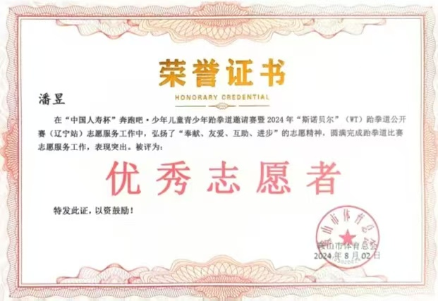 积极投身志愿服务,曾参加“中国人寿杯”奔跑吧少年儿童青少年跆拳道邀请赛志愿服务工作、“幸福教育杯”沈阳市中小学生跳绳比赛裁判员、积极参加“返家乡”“扬帆计划”社会实践活动。