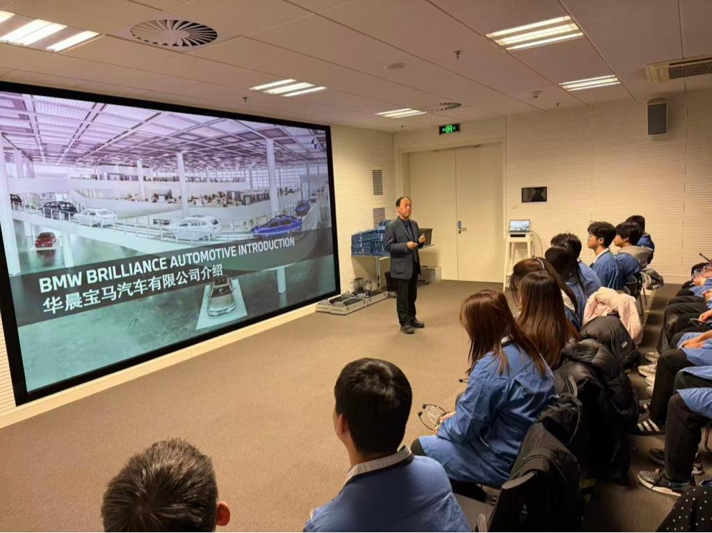 在参访首站——沈阳华晨宝马铁西工厂,学生们走进冲压、车身、总装等高自动化生产区域,实地观察智能机器人协同作业与自动检测设备运行流程,深入了解精益管理体系与柔性化生产方式。现场的高度智能化制造流程和严格质量管理体系,使同学们对汽车产业中的智能制造应用有了更加直观的体验。参访过程中,学生们将课堂所学的生产管理、供应链管理等理论知识与实际场景相结合,进一步理解了规模化协作、自动化技术升级与企业全球化生产布局的实际内涵。大家表示,通过此次实地学习,增强了对现代制造企业运营模式的认知,拓展了专业视野,实现了理论与实践的有机融合。