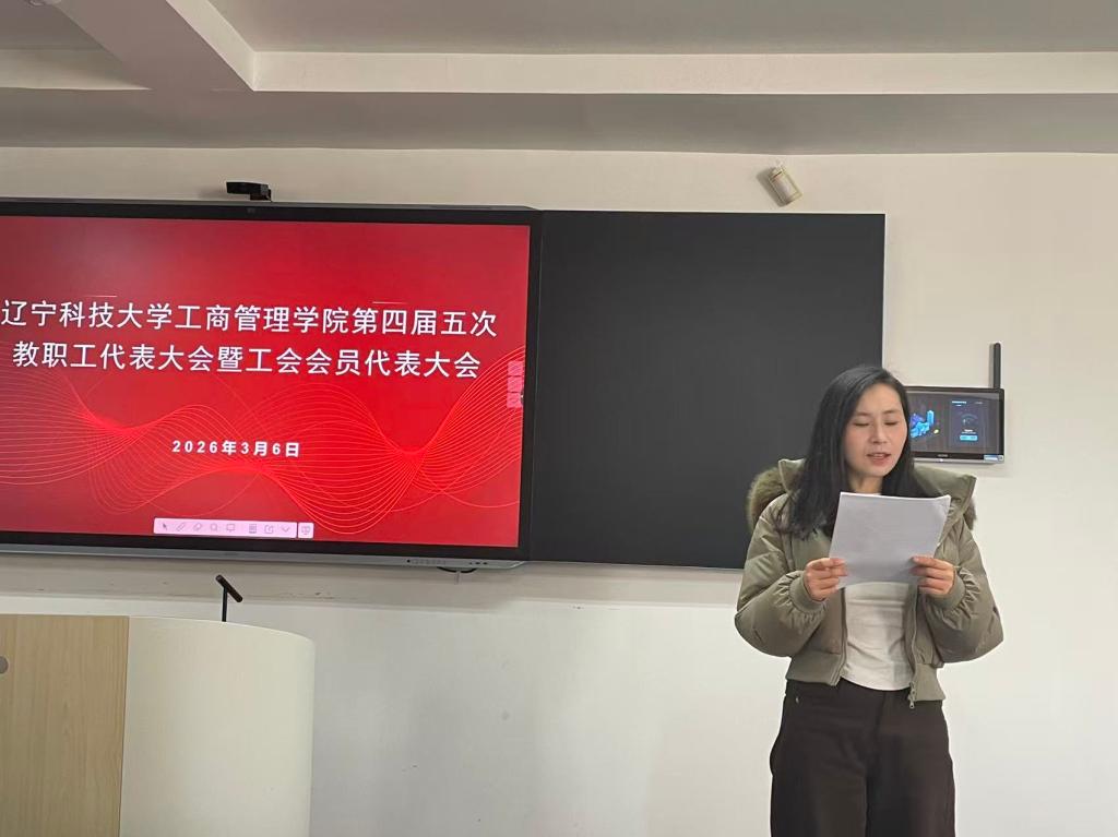 2026年3月6日,开云app官方在线入口工商管理学院第四届五次教职工代表大会暨工会会员代表大会召开。学院党委书记田树学主持会议,院长金玉然作学院工作报告,工会主席王妍作工会工作报告。学院领导班子成员及全体教职工代表参加会议。