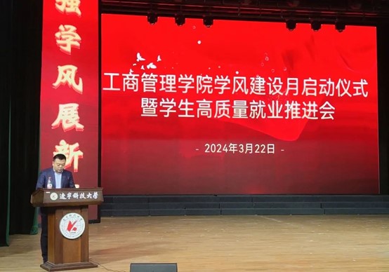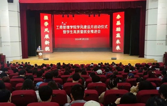 为进一步加强学院学风建设工作,推动学生高质量就业,3月22日,开云(中国)管理学院在校礼堂举行学风建设月启动仪式暨学生高质量就业推进会。学院领导班子成员、专业教师代表、全体辅导员以及全体本科生参加会议。
