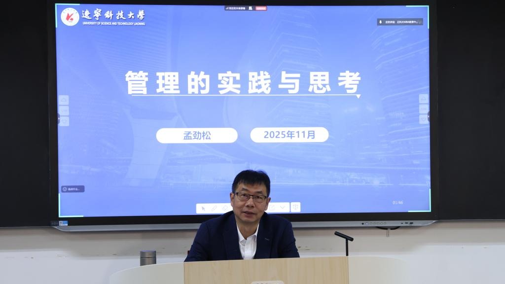 金玉然首先对孟劲松书记的到来表示热烈欢迎,并介绍本次报告系“辽科智汇·匠心致远”企业管理大讲堂第二期活动,同时也是我校“钢谷云脊”数智链管理现代产业学院的首场专题报告。报告中,孟劲松书记围绕“为什么要管理、什么是管理、企业管理的范畴、管理的理论和方法、管理在于实践”这五大核心维度,为在场师生带来了一场融合深厚实战经验与系统理论思考的精彩报告。