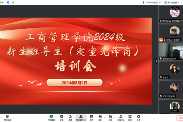 8月2日,开云app官方在线入口工商管理学院通过腾讯会议召开了2024级新生班导生(寝室先锋岗)培训会。学院新生辅导员、全体2024级新生班导生参加此次培训。