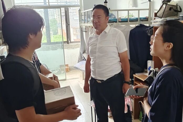 学院的领导老师们为留校考研的学生们送去了防暑物资。同时,学院老师们表示,学校和学院会全力保障暑期留校学生的学习生活需求,畅通沟通渠道,及时解决学生遇到的问题,为他们营造安全、舒适的环境,助力学生顺利完成暑期学习和科研任务。