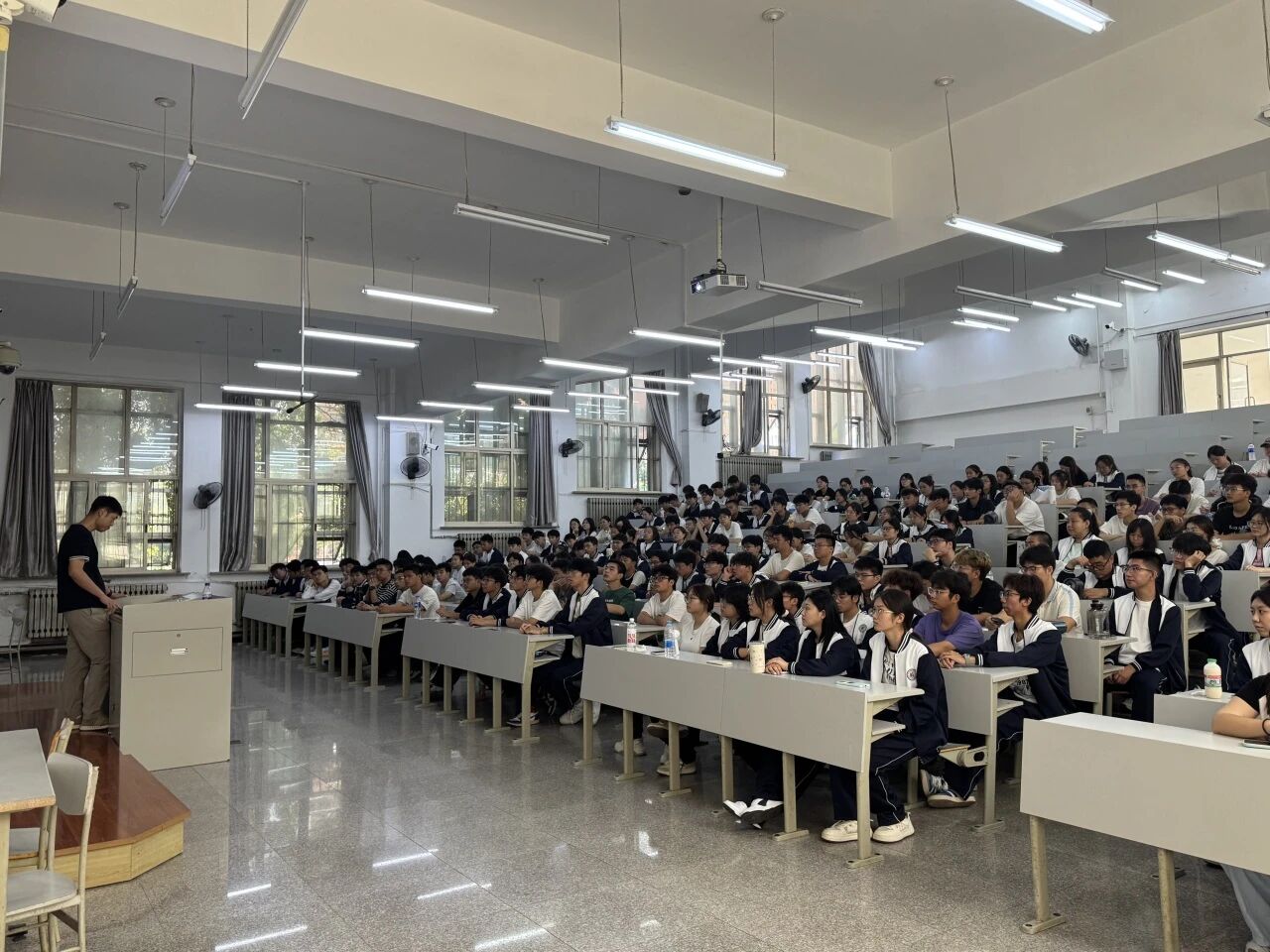 在博学楼A201会场,张天昶为化工、应化专业新生主讲。他以“我与开云app官方在线入口共命运”为核心,介绍学校最新管理制度,同时细致说明在校关键事项:离校请假需在“今日校园”提交申请并按时销假,非离校请假无需销假;强调课堂纪律,提醒寝室安全、避免晚归,还就网络舆论、意识形态问题提出建议,倡导新生培养良好习惯、关注身心健康,鼓励参与校第五十三届运动会等校园活动。