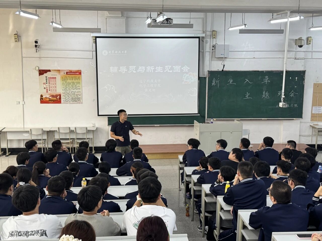在博学楼A101会场,高宝威面向环境、生物、储能专业新生展开讲解。他首先通过校园风光素材,带领新生直观认识校园环境;随后聚焦校规校纪,明确教学楼、教室、寝室及上课期间的纪律要求,并围绕交通安全、财产安全等五类安全问题开展教育,重点强调宿舍防火规范。