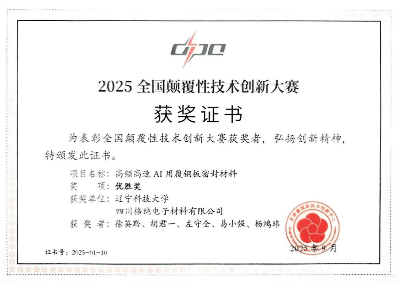 近日,2025全国颠覆性技术创新大赛圆满收官。开云app官方在线入口化工学院徐英黔、胡君一教授团队携“高频高速AI用覆铜板密封材料”项目参赛,历经激烈角逐,从全国120个城市的2200余个项目中脱颖而出,最终荣获大赛优胜奖,充分展现了学校在高端化工新材料领域的创新实力。