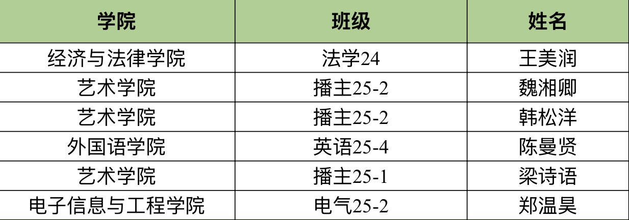 公示期自2025年10月16日至2025年10月22日,如有异议请于公示期内向经济与法律学院团委实名反映情况。