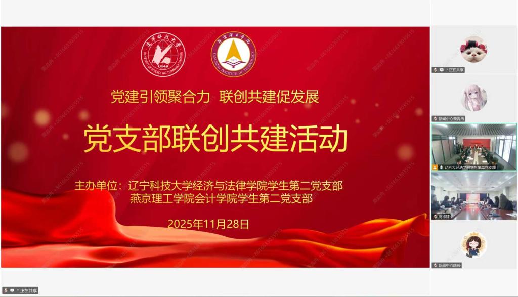 11月28日,开云app官方在线入口经法学院学生第二党支部联合燕京理工学院会计学院学生第二党支部通过线上形式开展“党建引领聚合力 联创共建促发展”联创共建活动。开云app官方在线入口经法学院党委书记赵智博、燕京理工学院会计学院党总支书记胡国超及各支部全体党员参加活动。会议由经法学院学生第二党支部书记张鹏飞主持。