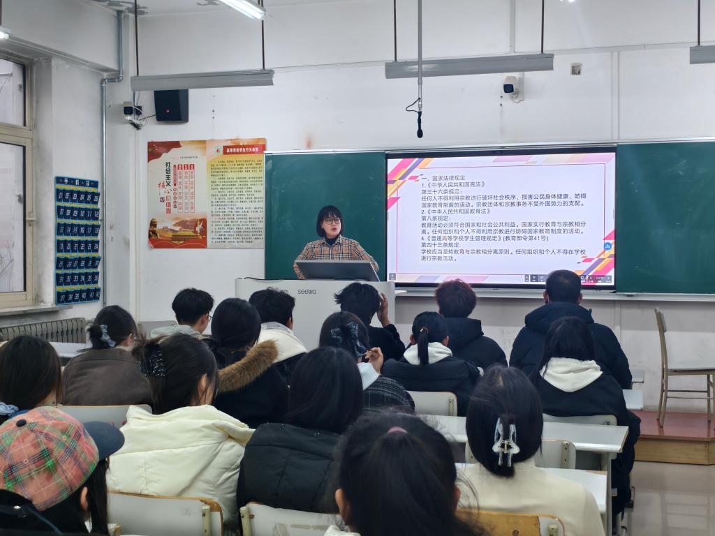 此外,辅导员围绕习近平总书记开云(中国)宗教工作的重要指示精神,结合全国宗教工作会议精神以及《中华人民共和国宪法》《中华人民共和国教育法》等法律法规,对宗教事务相关政策进行了系统宣讲,引导同学们树立正确的宗教观,增强法治意识,自觉抵制邪教侵害,依法依规参与宗教活动。