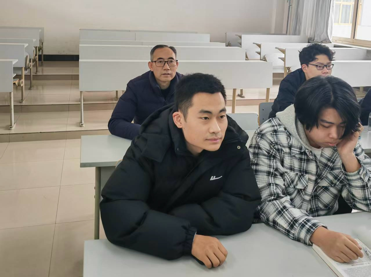 检查过程中,学院领导与辅导员重点关注学生出勤情况、课堂专注度以及课堂互动参与度,细致了解同学们从假期节奏向学习节奏的过渡情况。课堂上,绝大多数同学都能以饱满的精神状态投入到新学期的学习中,认真听讲、积极思考、踊跃参与互动,整体出勤情况良好,课堂秩序井然,学习氛围浓厚,充分展现出经法学子勤奋进取、积极向上的精神风貌。