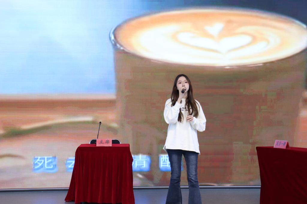 本次辩论赛共设两场比赛,辩题紧扣时代热点,分别为“学风建设的关键在于制度约束还是自我约束”与“人工智能的发展会让人类生活更幸福还是更担忧”。辩论伊始,双方辩手迅速进入状态,围绕各自立场展开激烈交锋。他们以严谨的逻辑、犀利的语言阐述观点,结合社会现实与生活实例,展开了一场思想与智慧的较量。在自由辩论环节中,双方辩手密切关注对方论述,巧妙抓住漏洞予以反驳,攻防有序、层层递进,辩场气氛紧张而热烈,赢得观众阵阵掌声。中场休息时,爱唱联盟社团的胡佳、宋嘉民同学分别演唱了《唯一》和《稻香》,悠扬的歌声缓解了比赛带来的紧张气氛。