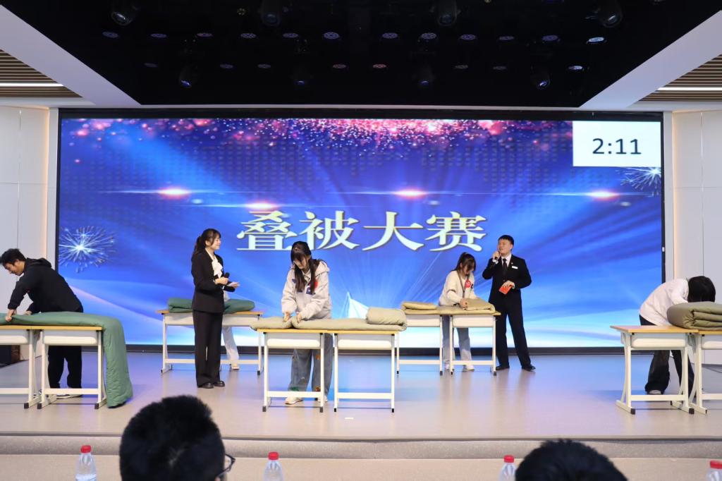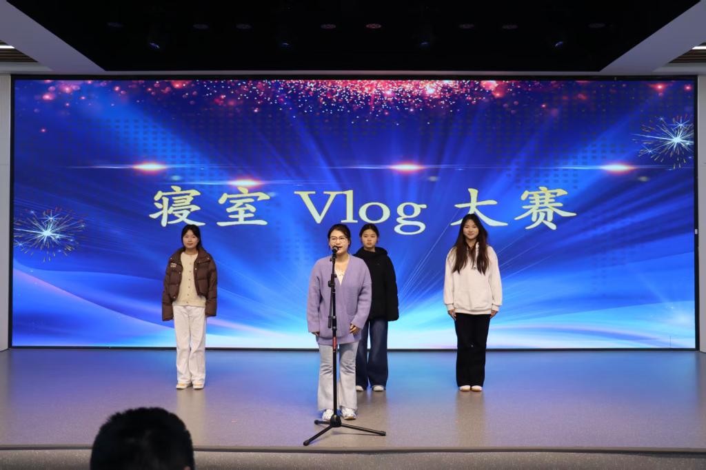 活动在孙浩鸣同学带来的小提琴独奏《富士山下》中拉开帷幕。悠扬的琴声将现场观众带入温柔的意境,也奏响了青春的序曲。本次寝室文化节共设“寝室vlog大赛”“才艺比拼大赛”“叠被子大赛”“‘寝’手换新——室友造型盲盒设计大赛”四个环节,内容丰富、形式多样,充分展现了同学们积极向上的精神风貌。在“寝室vlog大赛”中,各寝室通过精心拍摄的视频,记录了日常生活中的欢笑、互助与感动,传递出乐观进取的生活态度,展现了寝室成员间真挚的情谊与青春的活力;“才艺比拼大赛”更是将气氛推向高潮。合唱《相亲相爱一家人》唱出了同学们守望相助、携手共进的真挚情感,歌曲《Free Loop》展现了青年学子挣脱束缚、追求热爱的洒脱与自信,赢得现场阵阵掌声与欢呼;紧接着的“叠被子大赛”环节中,选手们在主持人的号令下迅速进入状态,动作干脆利落,一个个棱角分明的“豆腐块”在方寸之间诞生,展示了寝室生活中的严谨与巧思;“‘寝’手换新——室友造型盲盒设计大赛”则将现场气氛再次点燃。选手们以寝室为单位,利用有限时间和服饰,创意搭配出或优雅、或个性、或灵动的造型,充分体现了同学们的时尚品位与青春想象力。每一套穿搭都像是一份独特的青春宣言,彰显着自信与张扬。钮苏涵同学随后带来的舞蹈《我最红》更以动感的节奏与热烈的姿态诠释了“自信耀眼”的主题,将全场气氛推向顶点。