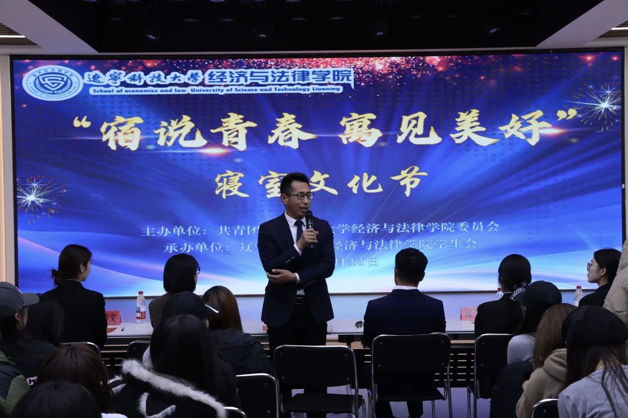 11月11日晚,经法学院于明德楼大学生活动中心举办“宿说青春,寓见美好”寝室文化节。学院党委书记赵智博、学办主任李路云、团委书记张鹏飞、团学骨干及2025级全体新生参加了本次活动。