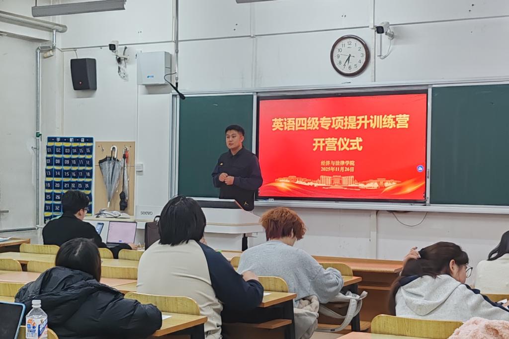 为切实助力学生攻克英语四级难关,提升英语应用能力,11月26日至12月11日,经法学院精心组织开展英语四级专项提升训练营,本次训练营由学院团委主办、学生会学术科技部承办,为学院近60名暂未通过四级考试的2024级学子量身打造备考助力平台。