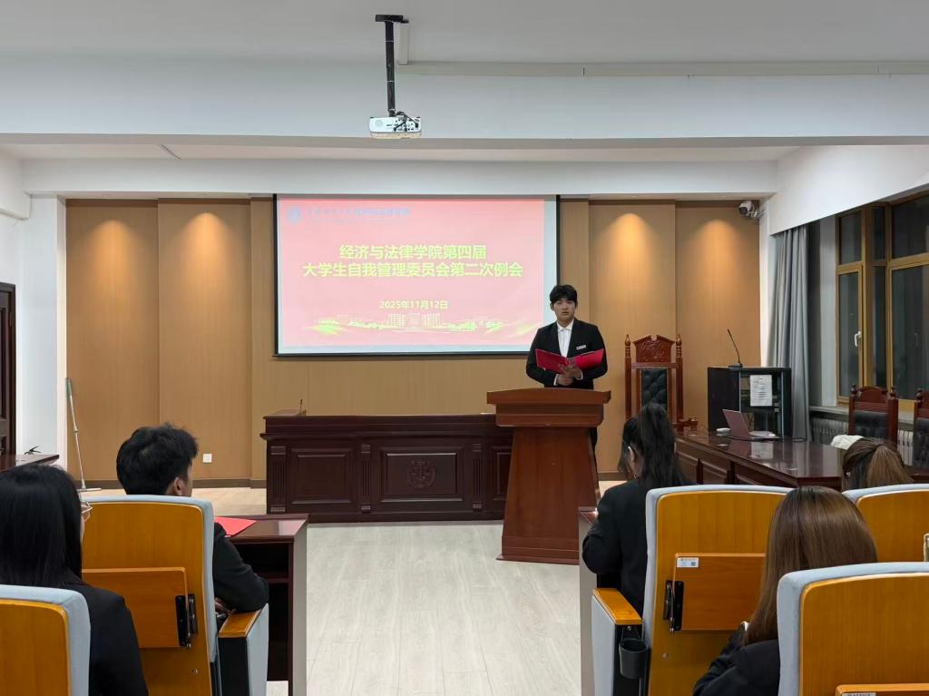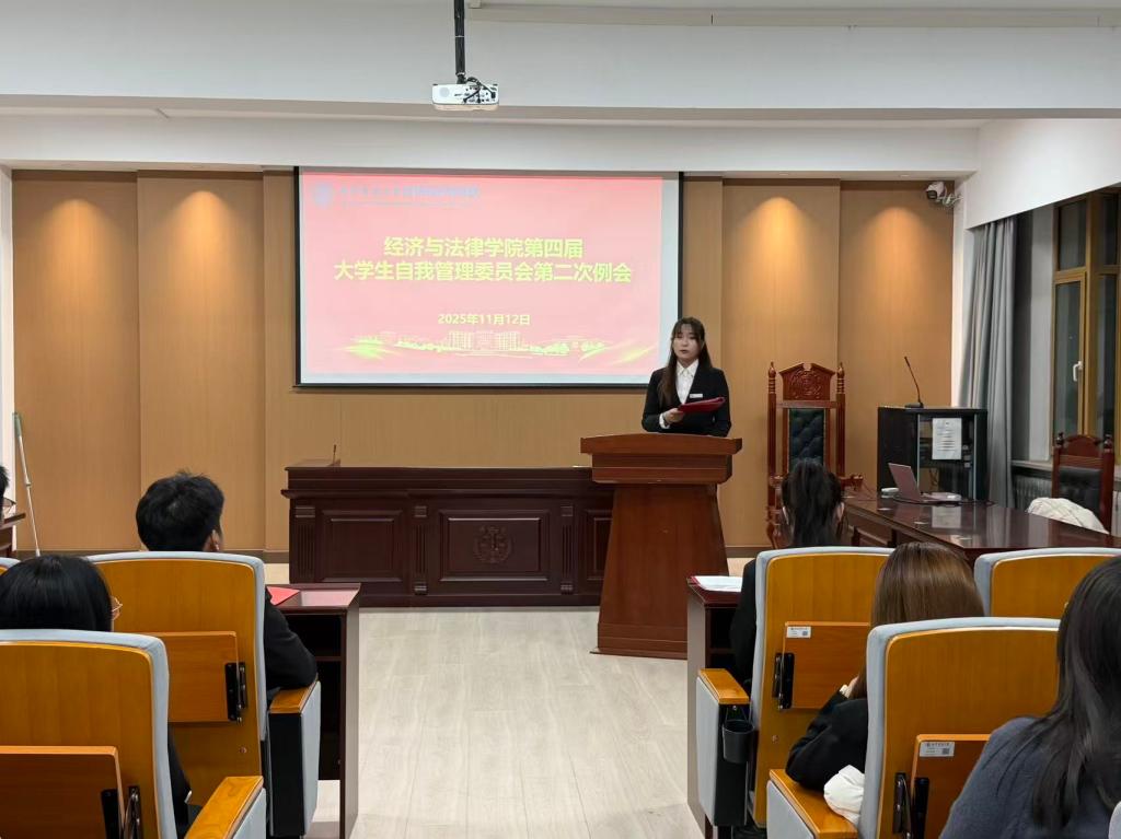 11月12日,经法学院于博识楼A402召开第四届大学生自我管理委员会(以下简称自管会)第二次例会,会议由经法学院自管会执行主席刘鑫喆主持,第四届自管会全体成员参加了本次会议。