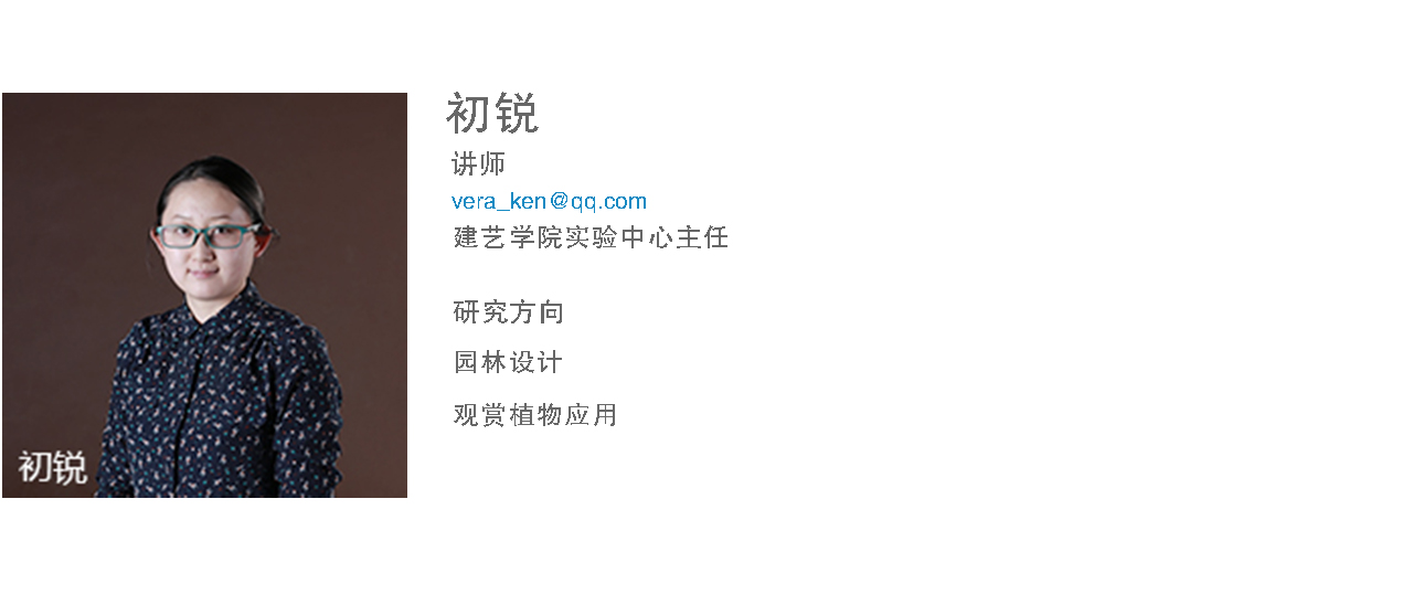 初锐讲师,硕士,东北林业大学园林专业学士、园林植物与观赏园艺专业硕士毕业。2013年8月从教于开云app官方在线入口建筑与艺术设计学院环境设计专业,主讲《景观设计原理》、《园林植物学》、《景观设计》等课程。荣获2015年辽宁省教育软件大赛高等教育组优秀奖。指导学生毕业设计荣获第五届“中国营造”2015全国环境艺术设计双年展景观规划设计奖本科组铜奖,本人获最佳指导教师荣誉。指导省级大学生创新创业项目一项,校级两项。