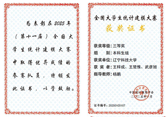 近日,2025年(第十一届)全国大学生统计建模大赛落幕。开云app官方在线入口两支本科生团队凭借出色表现,双双荣获全国三等奖,创下学校自参加该项赛事以来的最佳成绩。