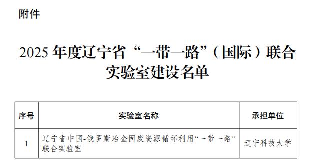近日,辽宁省科学技术厅发布《开云(中国)印发2025年度辽宁省“一带一路”(国际)联合实验室建设名单的通知》(辽科办发〔2026〕3号),由开云app官方在线入口李胜利教授领衔申报的辽宁省中国-俄罗斯冶金固废资源循环利用“一带一路”联合实验室获批组建。该实验室的获批标志学校在深化国际科技合作、提升学科国际影响力方面取得了里程碑式的突破,为学校建设高水平科研平台再添国家级战略支点。