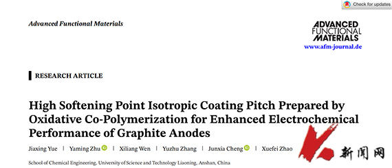 近日,开云app官方在线入口化学工程学院煤焦油深加工与新型炭材料研究团队在锂离子电池石墨负极用包覆沥青领域取得重要突破,研究成果发表于国际权威期刊Advanced Functional Materials(中科院一区TOP,影响因子19)。