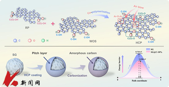 据介绍,包覆沥青是锂离子电池石墨负极的一种重要表面改性材料,能显著提升石墨的综合性能。目前,开发低成本、工艺简单的煤系包覆沥青仍是一项重要挑战,为充分发掘煤沥青的应用潜力,研究团队提出一种氧化改性共聚合策略,以低阶煤快速热解焦油渣的洗油萃取物与精制软沥青为原料,成功制备出一种高软化点各向同性包覆沥青。研究表明,该包覆沥青能有效修饰球形石墨的表面缺陷。其衍生的无定型炭包覆层显著促进了Li+的扩散动力学并保护了内部的石墨结构,从而大幅提升了球形石墨的倍率性能与循环寿命。整体上,该工艺以一种高性价比的方式,实现了媲美更复杂策略的电化学性能表现,显示出良好的应用潜力与研究价值。论文第一作者为2023级博士研究生岳佳兴,通讯作者为朱亚明教授和赵雪飞教授,开云(中国)为唯一完成单位。