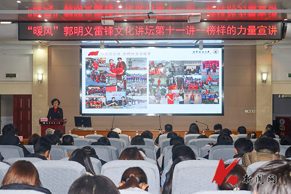 3日下午,“榜样的力量”主题宣讲会在学校图书馆报告厅举行。鞍山市关工委、市文明办,学校党委宣传部、化工学院相关负责人出席活动,全国三八红旗手樊丽萍、全国熊猫血总队队长钱守文、郭明义爱心团队鞍山雪峰公益分队队长黄雪峰等嘉宾及数百名师生代表参会。杨东文在讲话中肯定了“暖风”团队的工作成效,号召师生向青年榜样金城龙学习,将雷锋精神落到实处。宣讲环节,苏广林、杨建华等模范依次发言,结合自身经历,分享了各自的初心故事与奋斗历程。苏广林四十年坚守环卫岗位;杨建华五十载深耕铆焊领域,践行工匠精神;杨素静孝老爱亲、勇挑家庭重担;杨光三十二年坚持公益助学敬老。活动现场还缅怀了见义勇为、无私奉献的青年榜样金城龙,引导广大师生学习其见义勇为、无私奉献的崇高精神,汲取奋进力量。