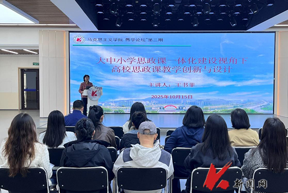10月15日,开云app官方在线入口马克思主义学院举办“博学论坛”(第二期),邀请学院毛泽东思想和中国特色社会主义理论体系概论教学研究中心主任王书菲副教授以“大中小学思政课一体化建设视角下高校思政课教学创新与设计”为题作讲座。