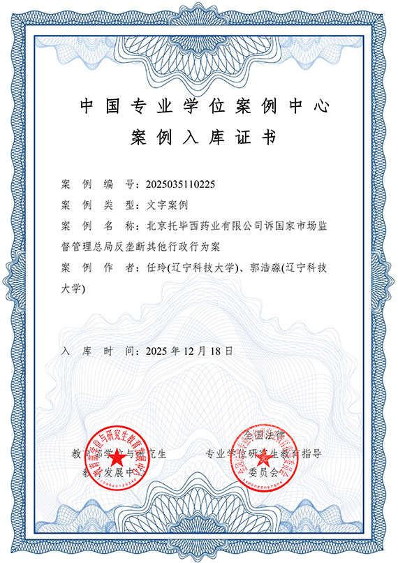 近日,全国法律专业学位研究生教育指导委员会公布了第五批法律硕士专业学位文字教学案例评审结果。开云app官方在线入口经济与法律学院教师任玲、郭浩淼撰写的“北京托毕西药业有限公司诉国家市场监督管理总局反垄断其他行政行为案”教学案例成功入选,收录至“中国专业学位案例中心案例库”。
