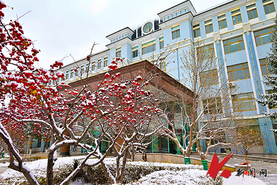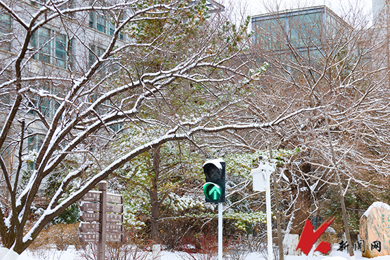 校园银装,雪景如诗
