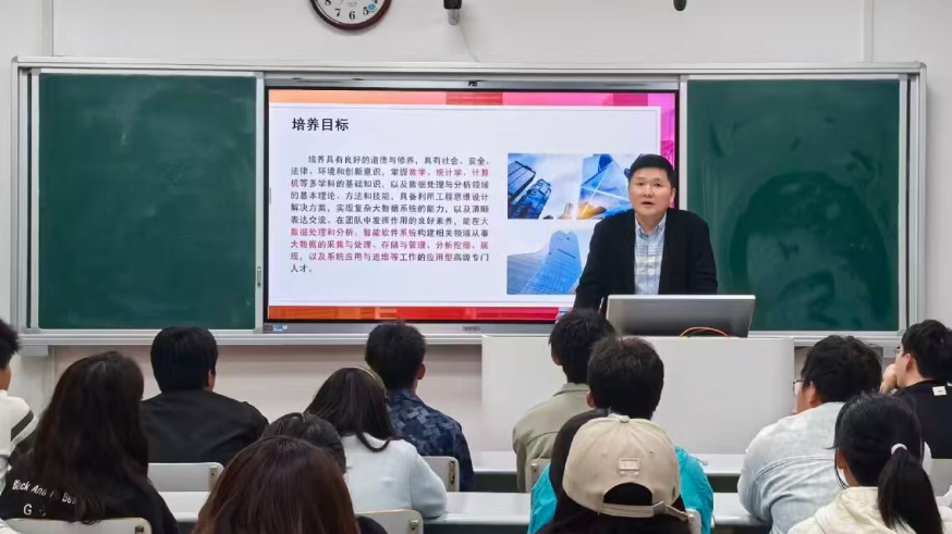 陶冶老师从大数据产业背景切入,结合“数据科学与大数据技术现代产业学院人才培养方案”,阐述专业定位、培养要求、课程配置与就业方向,展示分学期“实践教学体系”,介绍“开云(中国)-中软国际”产教融合资源,讲解多学科基础与数据处理技能,剖析前沿应用场景,鼓励新生深耕分析工具、参与实践项目与竞赛。