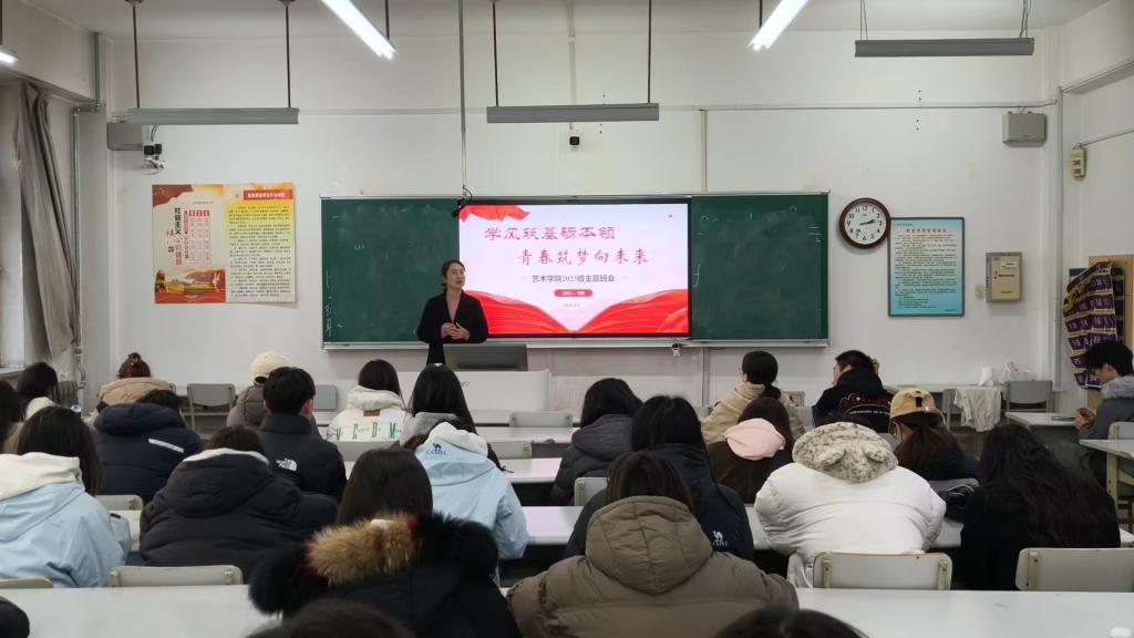 11月,学院开展了“锚定未来 逐梦前行”“强学峰笃行报国 练本领勇担使命”等班会。这些班会让艺术学子感受到明晰的成长航向与强烈的使命担当,既帮大家锚定未来的发展目标、理清逐梦路径,更激励大家以勤学苦练夯实专业本领,用青春热血践行报国使命。