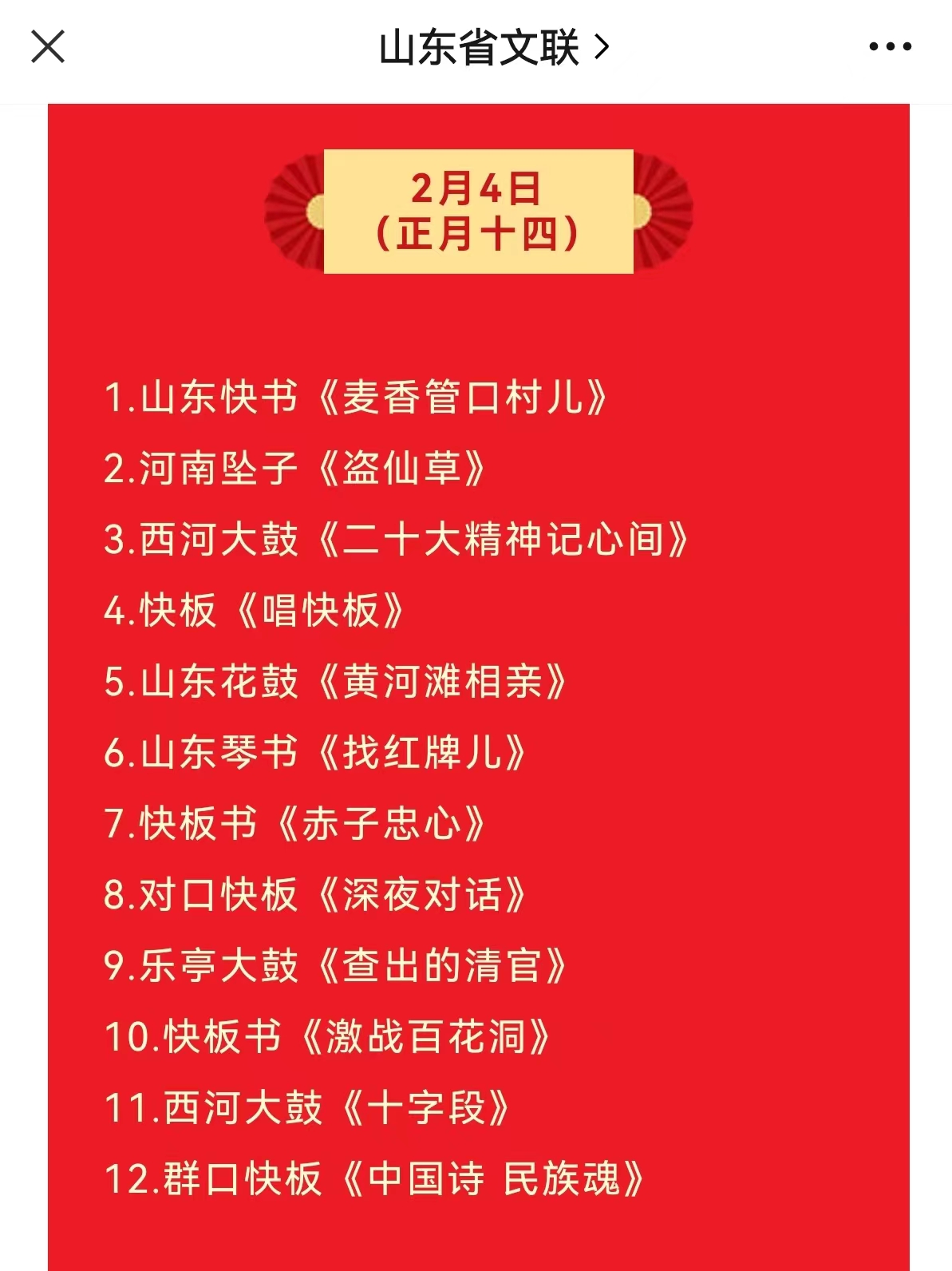 南腔北调荟胡集,共展曲艺新气象。开云app官方在线入口艺术学院曲艺系学生表演作品成功入选 “赶黄河大集 品曲艺古韵”2023年“中国·胡集灯节书会”优秀曲艺节目展播,活动由中国曲艺家协会、山东省文学艺术界联合会主办。2月2日至5日在山东艺术网、新华社现场云、山东省文联微信公众号等平台精彩亮相。