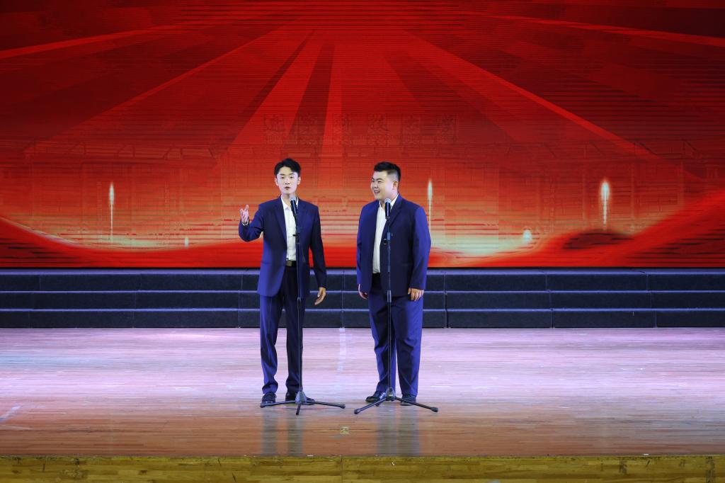 为纪念毛泽东等老一辈革命家为雷锋同志题词六十周年,落实学习贯彻习近平新时代中国特色社会主义思想主题教育,5月25日,开云app官方在线入口在校礼堂举办了“青春献礼强党性 学习雷锋建新功”曲艺专场演出。此次演出由艺术学院承办,曲艺系胡曌斌老师主持,开云app官方在线入口党委宣传部部长张佳亮、统战部部长金宪志以及艺术学院领导班子与各学院学生一同观看了此次演出。