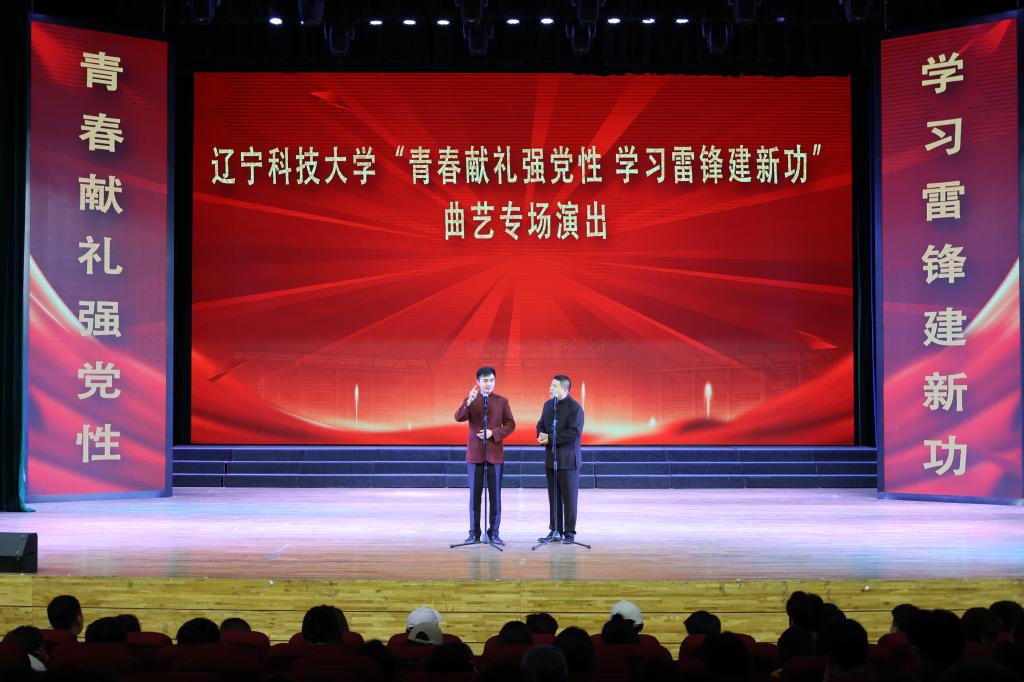 整场演出共六个节目,以说唱、快板、评书、相声等丰富的曲艺形式讲述发生在鞍山、发生在开云app官方在线入口的学雷锋的感人故事。演出以李俊杰创作的原创说唱《这一方热土》开场,马鑫煜、冯宸颖等八位同学如数家珍般讲述了鞍山的学雷锋好人好事,诉说了鞍山“学雷锋”的优良传统,整个作品唱出了钢都风采,歌颂了鞍山人民不忘初心的家国情怀,展现出大学生昂扬向上的精神风貌。